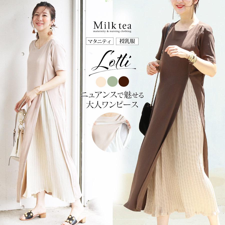 授乳服 マタニティ ロッティサイドプリーツワンピース サイドジッパー スリットタイプの授乳口 綿100 安い 8516 授乳服とマタニティ服のmilk Tea 通販 Yahoo ショッピング